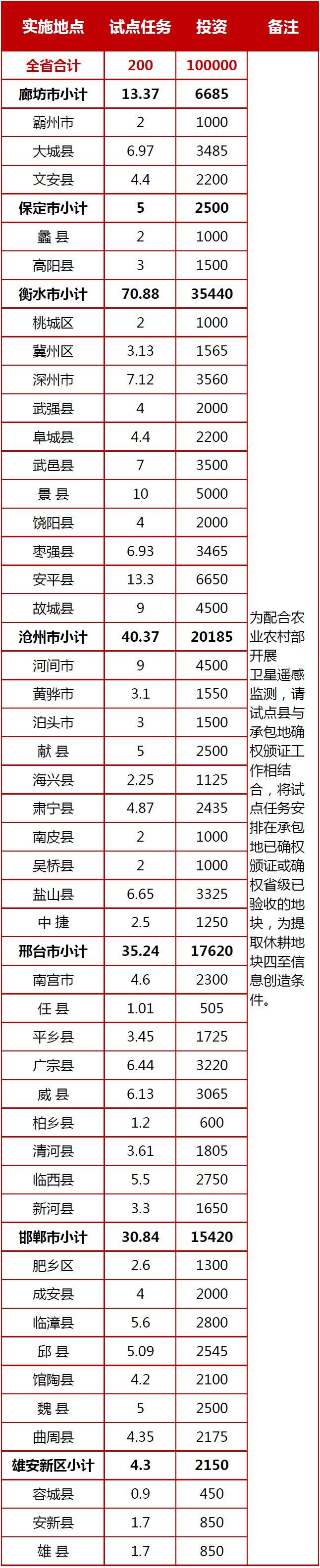 耕地季节性休耕制度试点任务表