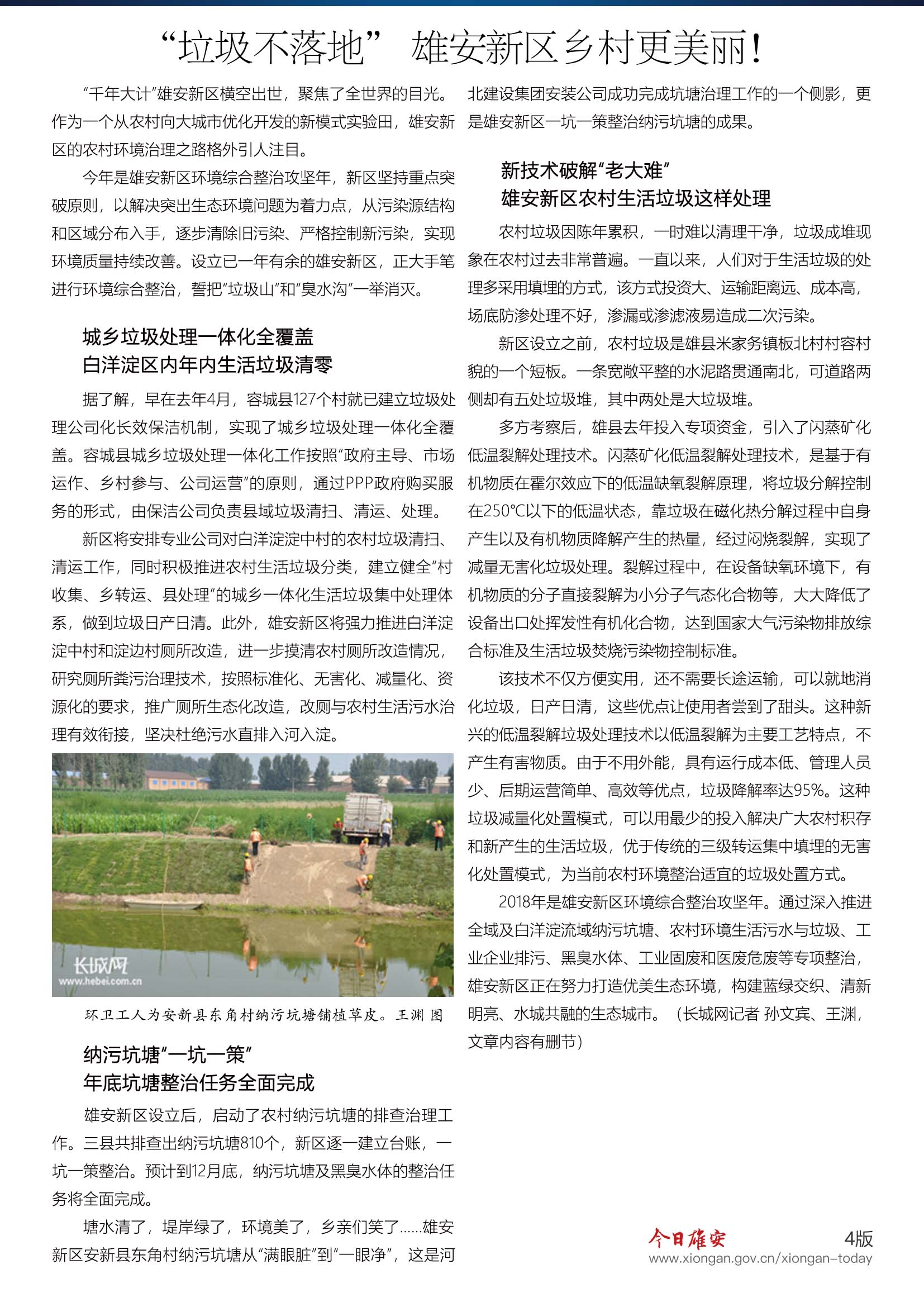 “千年大计”雄安新区横空出世,聚焦了全世界的目光。作为一个从农村向大城市优化开发的新模式实验田,雄安新区的农村环境治理之路格外引人注目。