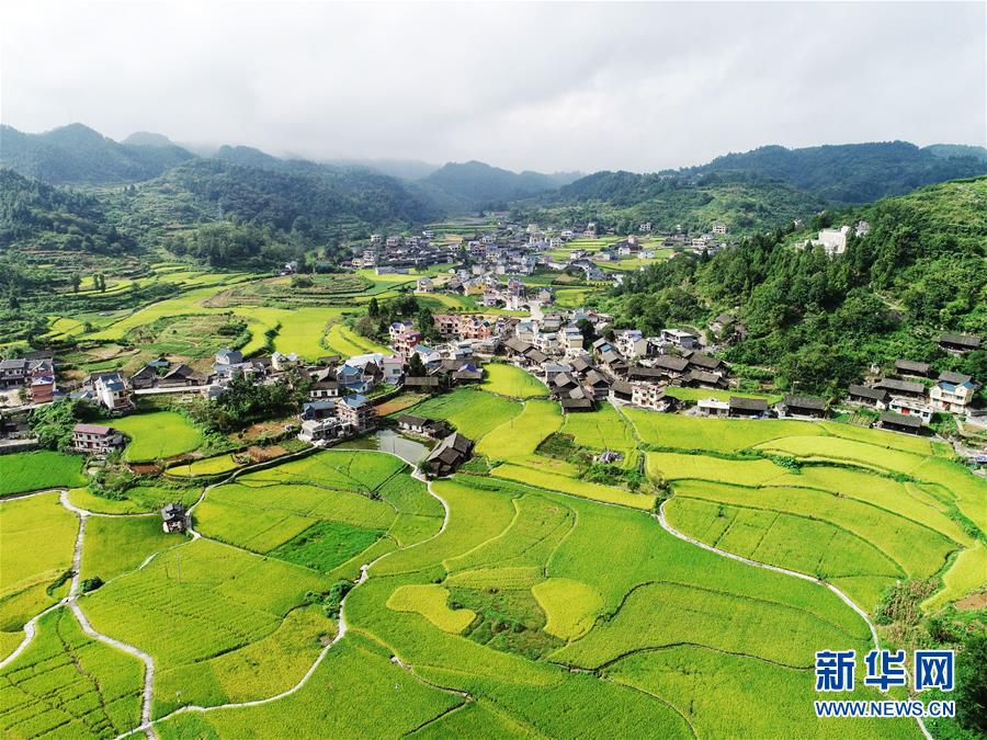 秋风送爽,贵州、湖南、重庆等地山乡稻田泛黄、田野铺金,美丽的秋收画卷展现在人们眼前。 新华社发(姚方 摄)