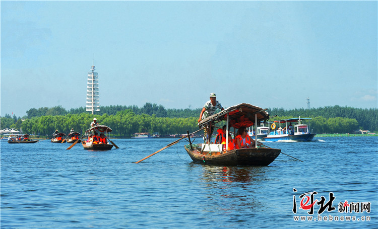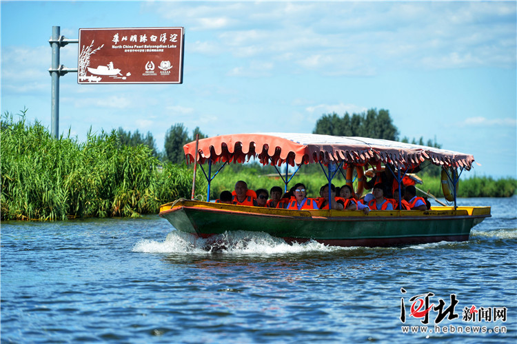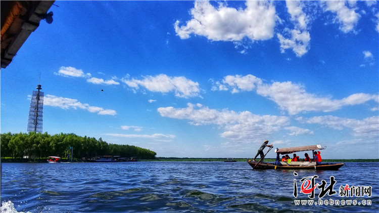 9月5日,位于雄安新区的白洋淀碧水蓝天、景色宜人,吸引不少游客前来欣赏游玩。日前,雄安新区启动白洋淀综合整治攻坚行动,高标准、严要求实施白洋淀生态修复工程,全面提升白洋淀生态环境保护水平,加快恢复“华北之肾”功能。 记者田明摄影报道