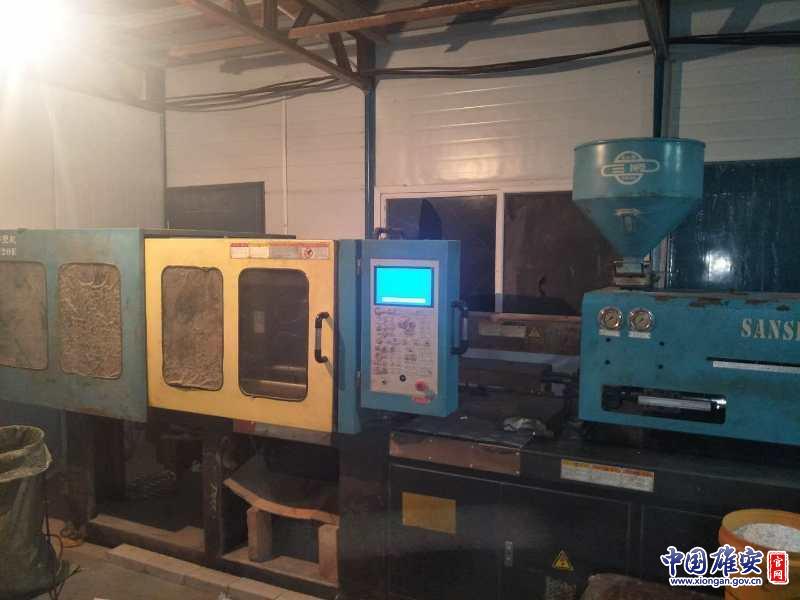 2018年8月31日晚8点,根据雄安新区生态环境局12369环保热线举报线索,雄县连夜组织环保、公安等部门,对雄县昝岗镇东谷庄园内东南角注塑加工点进行了突击检查执法。执法人员到达现场时,该加工点正在非法加工注塑塑料穿线盒,粉料机等机器虽未生产但仍有余温,生产迹象明显。