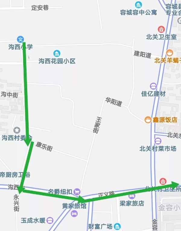 请南行车辆及行人绕行大水大街,北行车辆及行人绕行罗萨北大街;沟西小学绕行罗萨北大街至正义路进入。