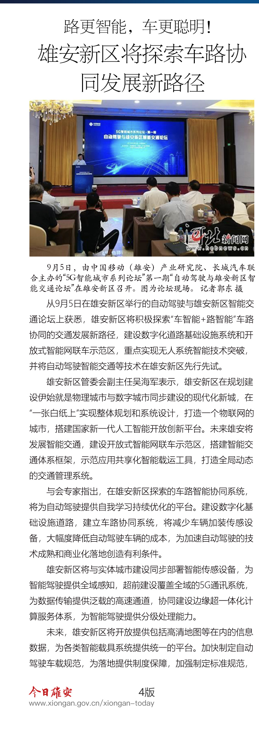 自动驾驶与雄安新区智能交通论坛举行