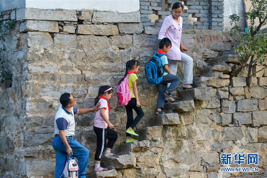 9月7日,在位于太行山东麓的河北省邯郸市涉县更乐镇张家庄村,“80后夫妻”赵文波和秦晶晶一起护送学生回家。赵文波和秦晶晶均为师范学校毕业,先后投身当地农村教育事业。2000年两人相识,共同的教育理想让他们走到了一起。18年来,两人相爱相守,扎根山区,在三尺讲台上共同坚守。