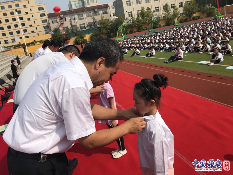 开学典礼上,进行了“升国旗 奏国歌”“系好第一粒纽扣”“背上小书包”“宣誓”等活动。容城县相关领导在发言中对北京朝阳区实验小学教育集团为北京朝阳区实验小学雄安校区教育提升所做努力表示了感谢,对学校所取得的成绩提出表扬,并希望孩子们好好学习,将来为雄安新区建设贡献力量。