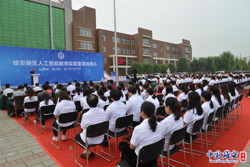 中国雄安官网9月14日电(记者封俊龙 通讯员朱峙委)9月14日,雄安新区人工智能教育实验室落成剪彩仪式在雄县白洋淀高级中学广场举行,雄安新区党工委委员、管委会副主任傅首清,百度公司副总裁赵承,北京师范大学智慧学习研究院院长黄荣怀,雄县县委书记万树军等出席,白洋淀师生代表约1800人参加仪式。