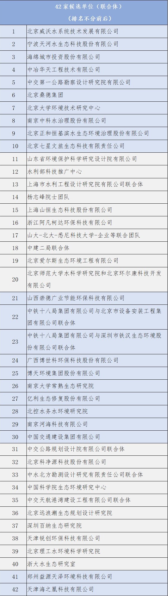 9月9日,雄安新区生态环境局与中国雄安集团共同组织召开了“雄安新区生态湿地先进治理技术招选专家咨询会”。专家组由中国环境科学研究院、武汉大学、北京师范大学、北京林业大学、河北农业大学、河北省环境科学研究院等国内知名湿地治理方面的专家组成。专家审阅了各单位的响应材料,按照响应材料的技术先进性、需求适用性和技术可行性,经认真论证,初步筛选出42家单位(联合体)作为下一阶段征集详细技术方案的候选单位(名单附后,排名不分先后)。请入围的42家单位于9月21日24:00前提供相关工作业绩、团队组成、工作开展的必要支撑条件以及进一步细化的关键技术路线等材料。
