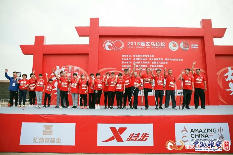 2018雄安马拉松赛事上,组委会组织残障人士参与的“梦想一公里”“好瓶活动”“一汪清水”等公益行动,在鼓励全民健身、时尚跨界过程中,嵌入“绿色、健康、环保、公益”理念,彰显雄安魅力,畅想未来雄安新生活。