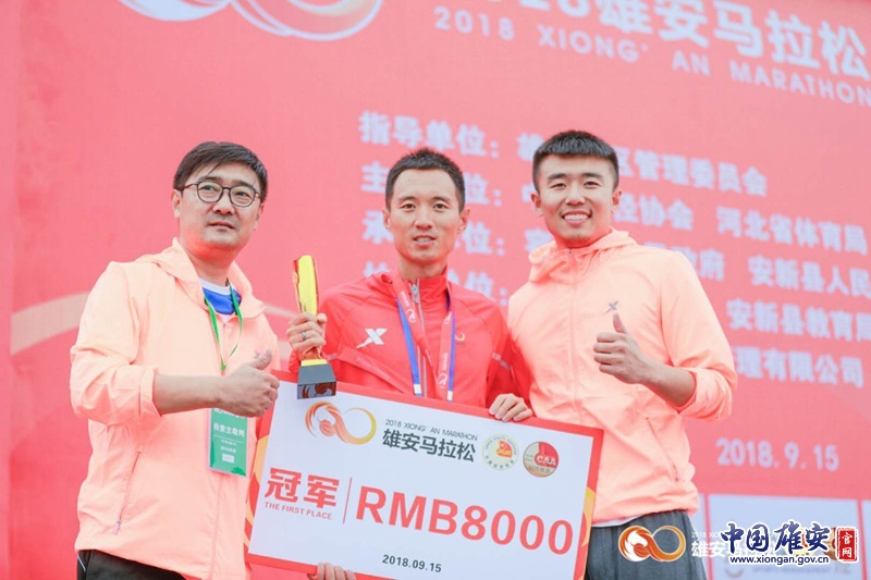 2018雄安马拉松半程男子组第一名获得者程乾育。图片由雄安马拉松组委会提供