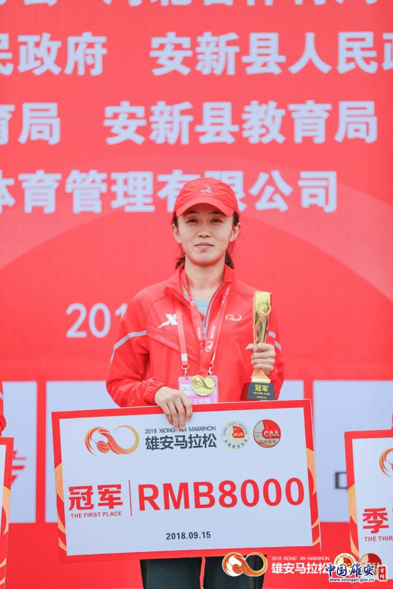 2018雄安马拉松半程女子组第一名获得者金玲玲。图片由雄安马拉松组委会提供