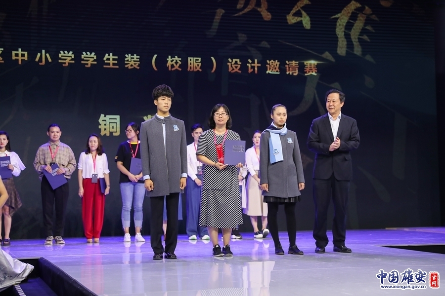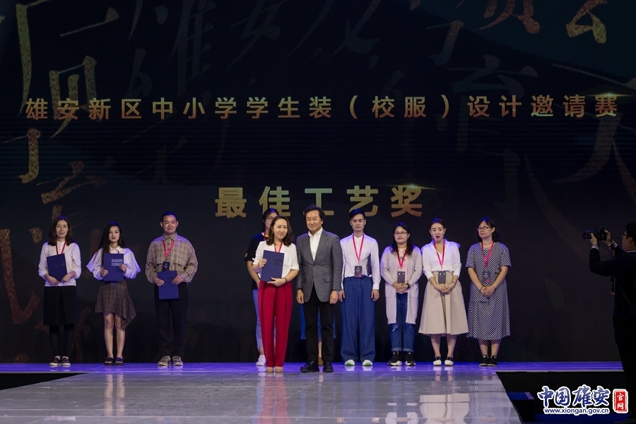 中国服装设计师协会副主席、雄安新区中小学学生装(校服)研究中心主任刘元风为获奖选手颁奖。中国雄安官网记者毛鹤然 摄