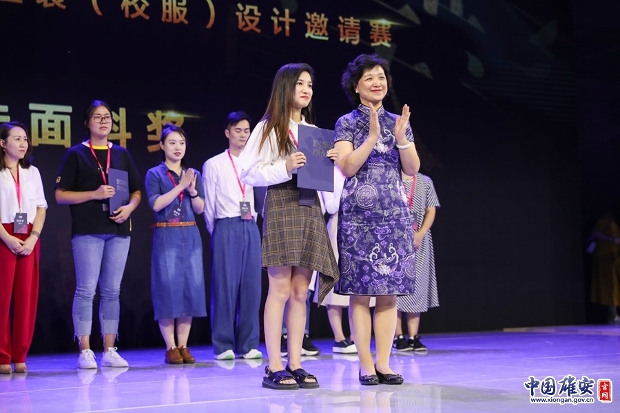 北京服装学院党委副书记艾丽为获奖选手颁奖。中国雄安官网记者毛鹤然 摄