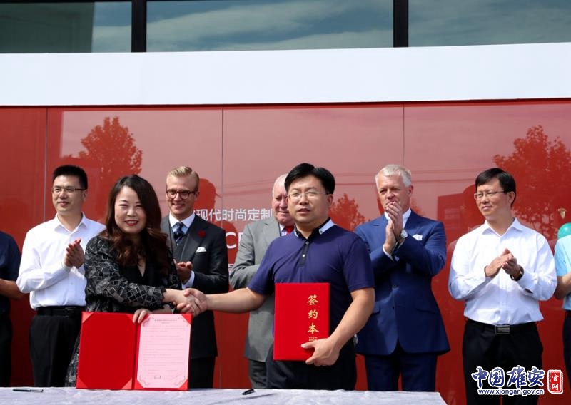 雄安现代时尚定制中心与雄源集团签署战略合作协议。记者崔利杰 摄