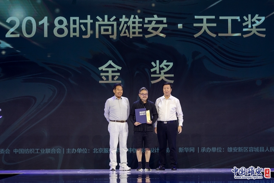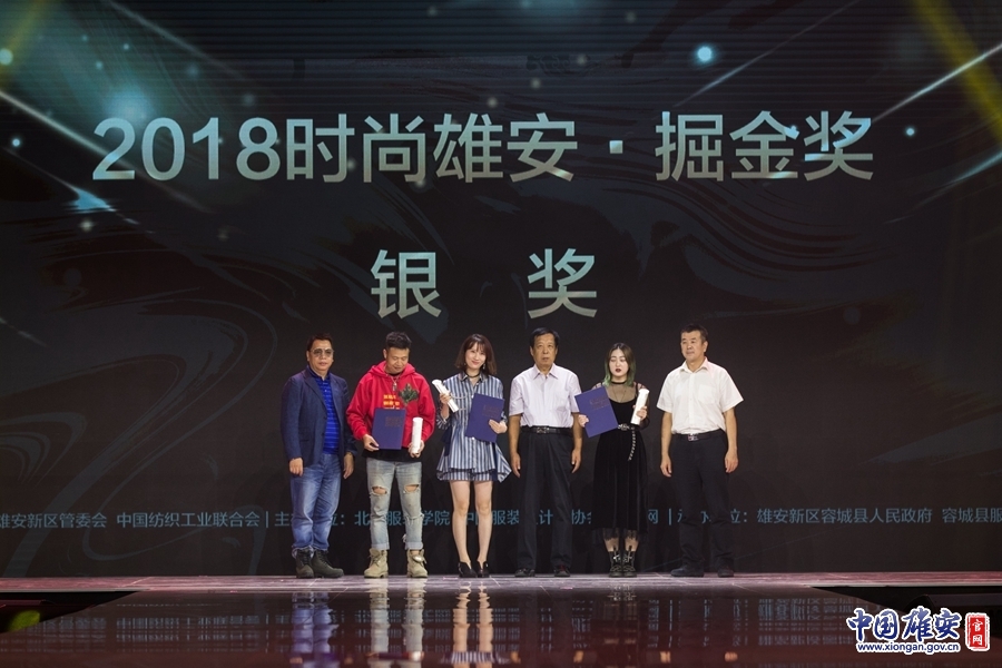 文化部恭王府博物馆副馆长陈晓文、中国服装设计师协会副主席熊兆飞、容城新奥燃气有限公司副总经理张进波为2018时尚雄安·掘金奖·银奖获奖者颁奖。中国雄安官网记者马梦迪 摄