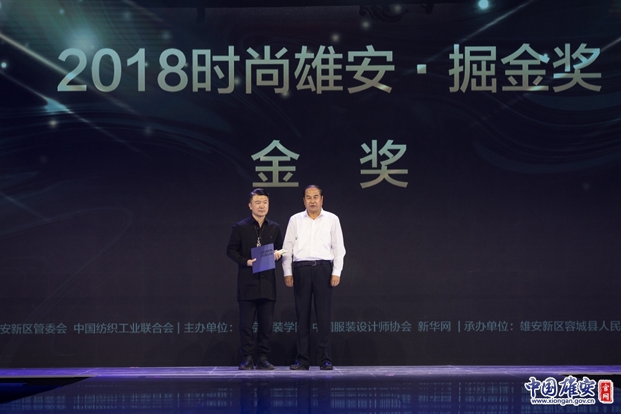 保定市人大常委会主任马誉峰为2018时尚雄安·掘金奖·金奖获奖者颁奖。中国雄安官网记者马梦迪 摄