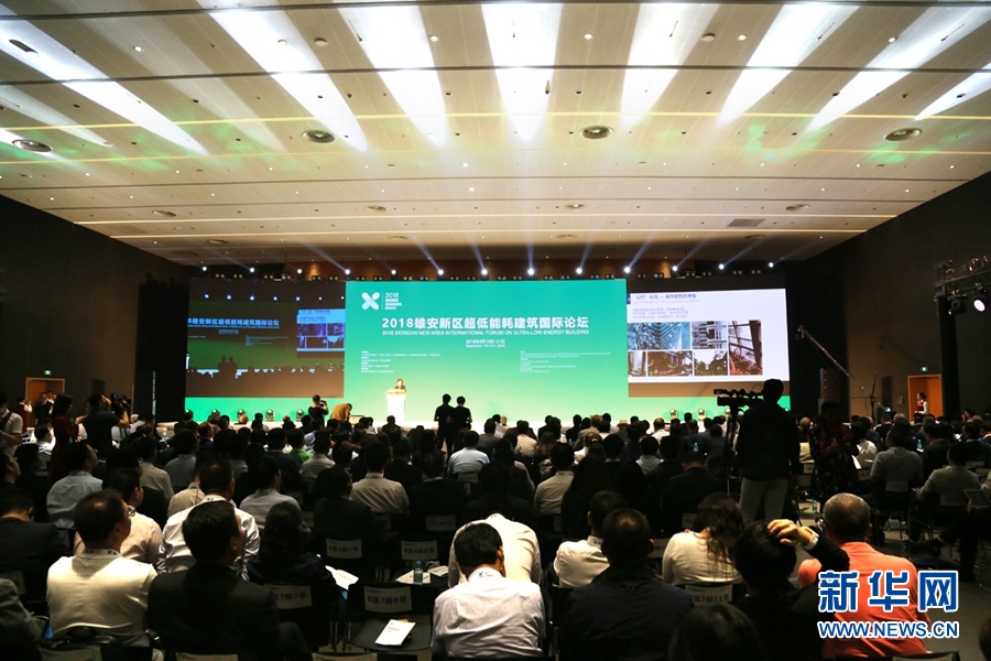 19日上午,以“走进超低能耗建筑、引领生态宜居生活”为主题的2018雄安新区超低能耗建筑国际论坛拉开帷幕,这也是雄安新区主办的首个大型国际论坛。新华网 王立鹏摄