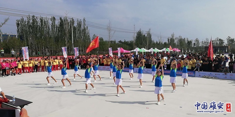在闭幕式上,来自新区三县的舞蹈队为到场运动员和观众带来了《中国范儿中国美》《走进新时代》《炫动阳光》等形式多样的精彩舞蹈节目,获得了阵阵掌声。其中,容城县代表队的《走进新时代》舞蹈中,队员们用手中的舞蹈扇摆出了“千年大计”和“大美雄安”的字样,惊艳全场,一时间现场沸腾,成为此次决赛场上的一大亮点。