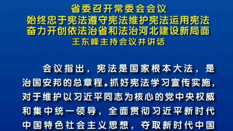 10月9日上午,省委召开常委会会议强调,要始终忠于宪法遵守宪法维护宪法运用宪法,奋力开创依法治省和法治河北建设新局面。