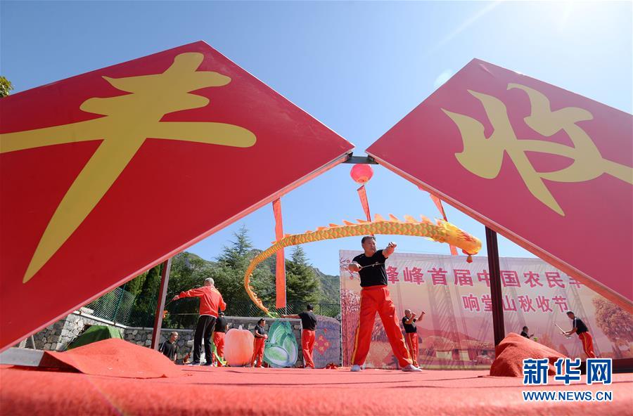 9月22日,演员在河北省邯郸市峰峰矿区首届“中国农民丰收节”暨“响堂山秋收节”开幕式上表演空竹。 新华社发(郝群英 摄)
