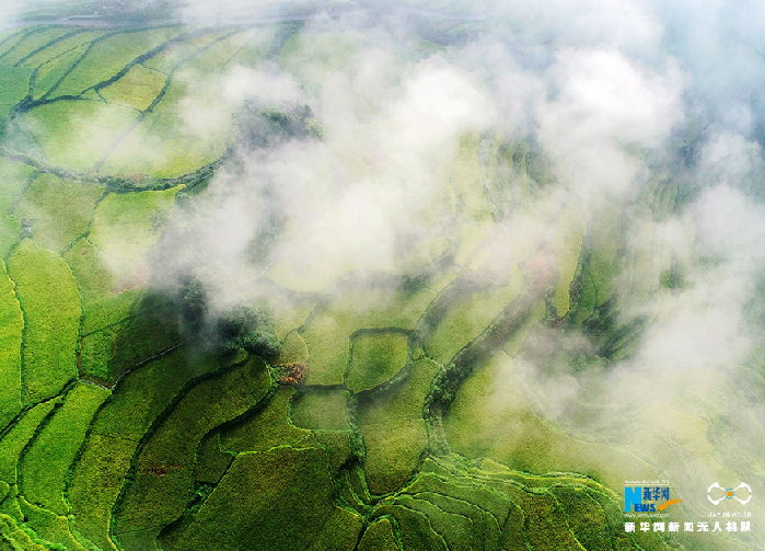 图为9月2日航拍重庆花田乡梯田晨雾美景,万亩梯田晨雾里,宜人秋色奔眼前。新华网发(陈碧生 摄)
