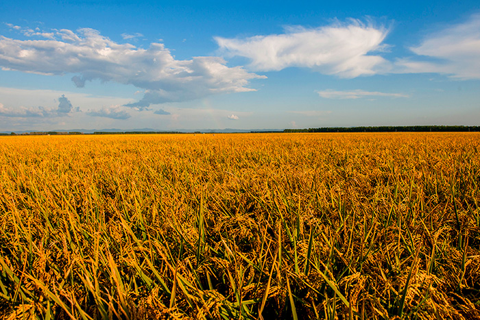 8月30日,龙江农垦红兴隆管理局秋高气爽,稻谷飘香,到处呈现出一派丰收的景象。新华网发 (张伟 摄)