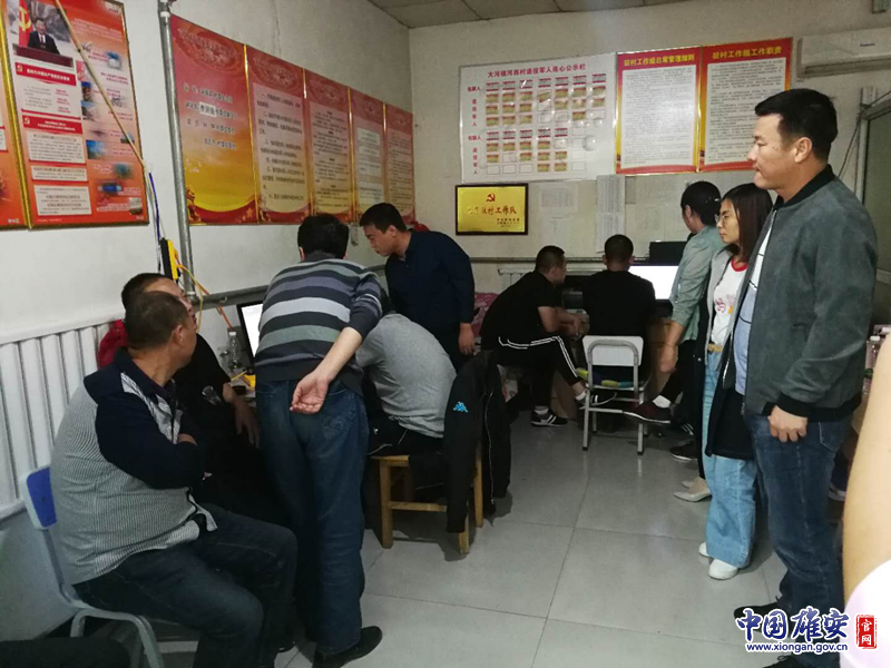9月24日,中秋节,容城县大河镇河西村驻村干部、镇干部、村干部在工作。记者孙丹 摄