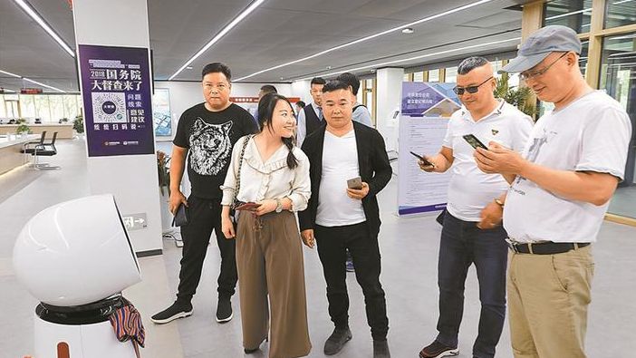 雄安行政服务中心集中办理新区的各项事务并且有智能机器人解答相关问题。深圳特区报记者 丁庆林 摄