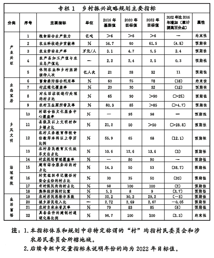 《乡村振兴战略规划(2018-2022年)》主要内容如下。