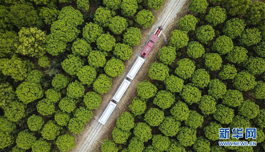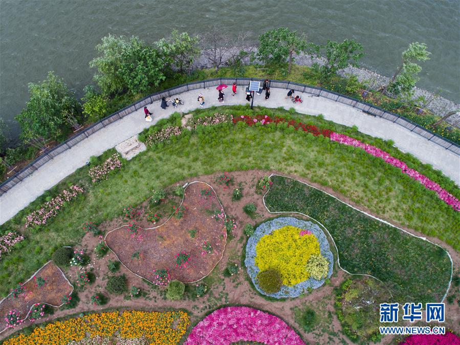 浙江省杭州市余杭区塘栖镇丁河村村民们在游览当地乡村旅游步道“塘超小径”(2018年4月24日无人机拍摄)。 新华社记者徐昱摄