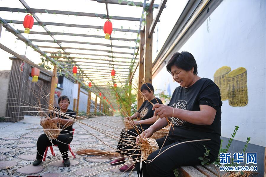 河北省巨鹿县柳洼村村民在柳洼风情小镇内制作柳编产品(2017年10月10日摄)。 新华社记者牟宇摄