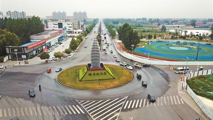 从G18高速公路容城出口一下来,就能看到矗立在路中央的容城县地标容和塔,塔的东北角是一片封闭的工地,里面是等待被揭秘的雄安新区新地标——创意广场装置艺术。