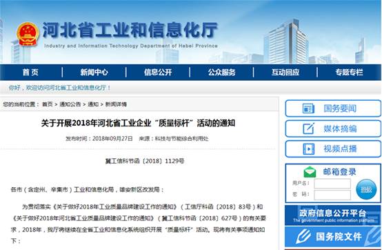 从河北省工信厅获悉,即日起至10月26日,2018年河北省工业企业“质量标杆”开始申报。河北省将从全面质量管理和“互联网+”应用两个申报方向,遴选12个左右具有适用性、有效性、先进性的全省“质量标杆”。