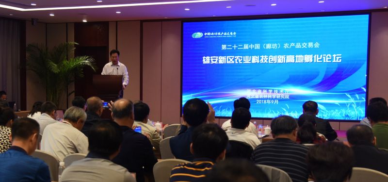 9月26日,在第二十二届中国(廊坊)农产品交易会上,省科技厅组织举办雄安新区农业科技创新高地孵化论坛。省科技厅副厅长李丛民主持论坛,国家农业信息工程技术研究中心赵春江院士、中国农村技术开发中心贾敬敦研究员、河北省农林科学院王慧军教授作了主题演讲。