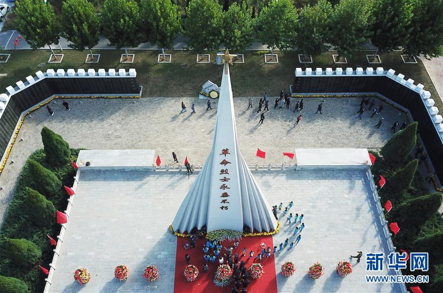 9月30日,河北省廊坊市各界人士来到廊坊烈士陵园,参加烈士纪念日活动(无人机拍摄)。 当日是我国第五个烈士纪念日,全国各地举行活动纪念先烈。 新华社发(卢锋 摄)