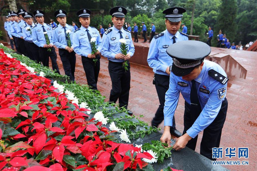 9月30日,在贵州省赤水市红军烈士陵园,公安民警代表向红军烈士敬献鲜花。 当日是我国第五个烈士纪念日,全国各地举行活动纪念先烈。 新华社发(王长育 摄)