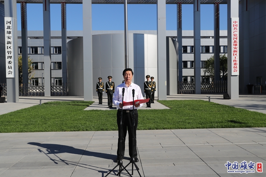 雄安新区党工委副书记、管委会常务副主任刘宝玲出席并主持升国旗仪式。中国雄安官网记者 刘东尧摄