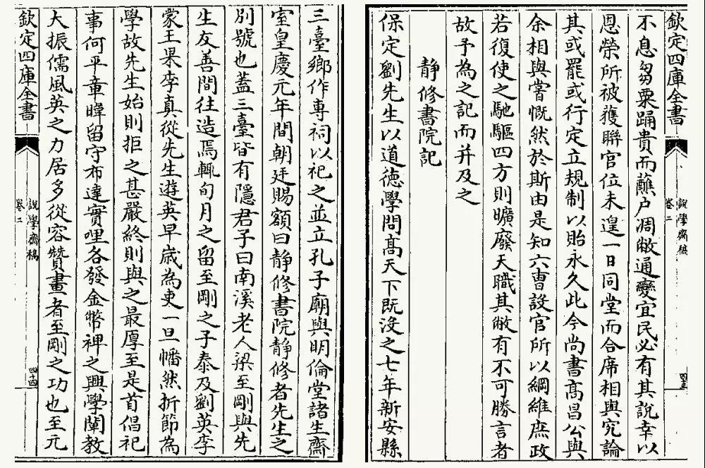 乾隆《新安县志》中,大学士危素在《静修书院记》中写道 :“保定刘先生以道德学问高天下,既没之七年,新安县三台乡作专祠以祀之。并立孔子庙与明伦堂。诸生斋室,皇庆元年间朝廷赐额曰‘静修书院’。”静修书院古今闻名,并历代多次修葺,备受文人墨客景仰。历代文人墨客吟唱静修书院,发思古幽情,表达殷殷的期望和追随之意。特别是明代礼部尚书刘恺,告老还乡后所写“我生愧在三台里,谁为先生步后尘”二句,深切抒发了对静修先生的追思和反思;张寅的“纲常有赖三台地,华夏能开一脉天”,更是对静修书院的高度推崇和企盼。