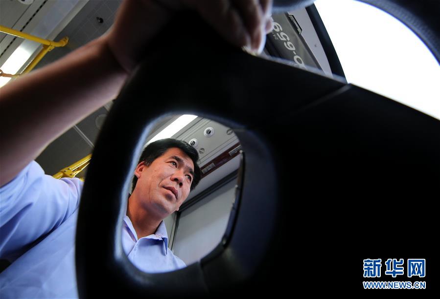 10月4日,在河北省武安市,一名公交司机驾驶公交车行驶在街头。 国庆节期间,许多劳动者仍然坚守在工作一线,在岗位上度过节日。 新华社记者 王晓 摄