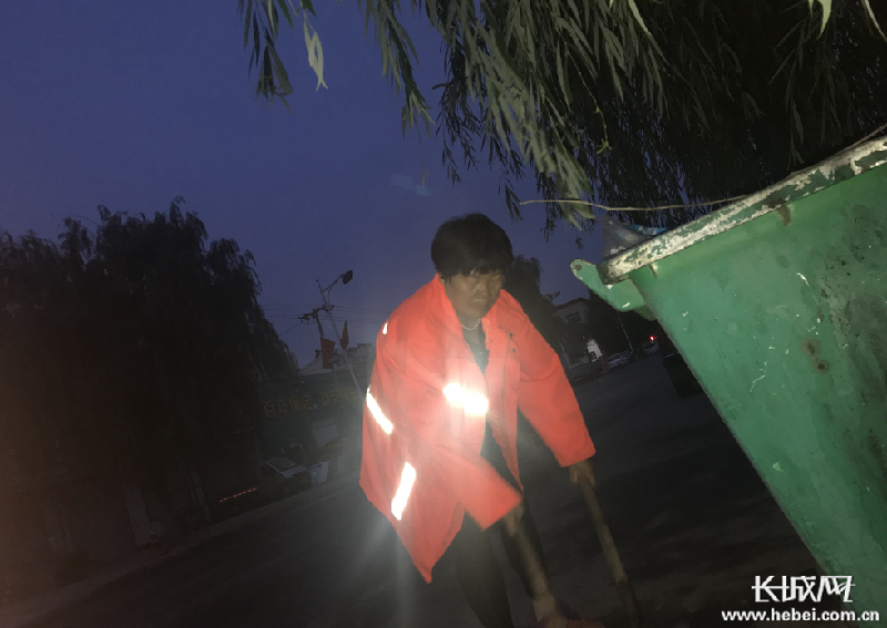 10月6日清晨,在雄安新区容城县金台路,一名环卫工人正在清扫街头垃圾。孙文宾 摄