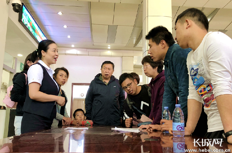 10月6日上午,在雄安新区安新县白洋淀景区,工作人员正在热情的在为游客们答疑解惑。孙文宾 摄