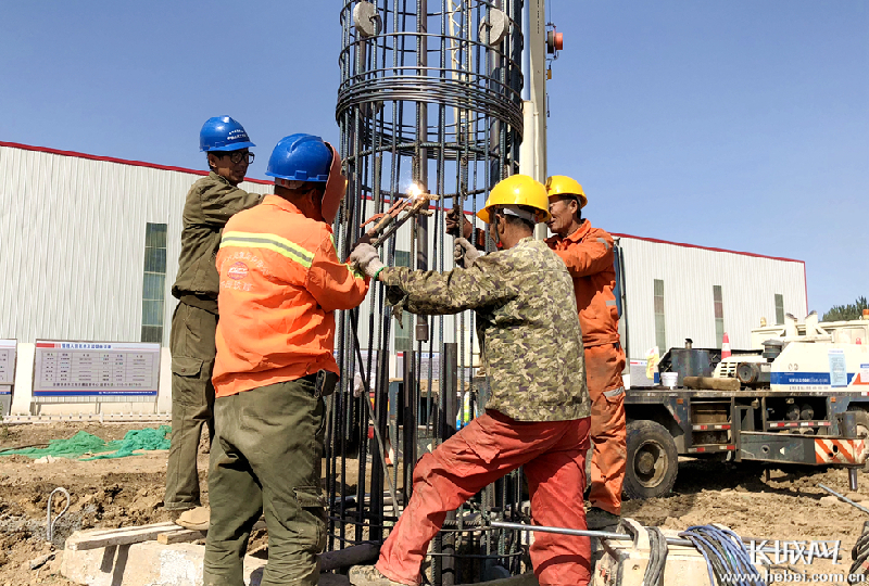 10月6日上午,在雄安新区雄县保静公路旁,工人们在京雄铁路施工现场进行作业。霍少轩 摄