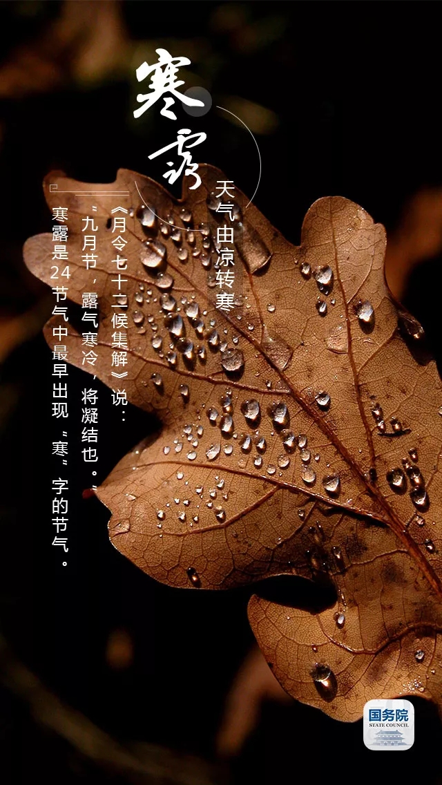 “九月寒露白,六关秋草黄。”《中国天文年历》显示,10月8日16时15分将迎来农历二十四节气之一的寒露。此时节,西风飒飒,秋雨潇潇,落英满地,鸿雁南迁,枫叶火红,菊花开放。