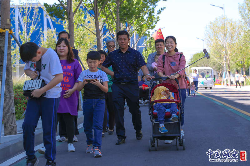 十一假期,雄安市民服务中心游客接待运营工作安全有序。图为10月3日当天,游客在园区游览。中国雄安官网记者王京卓 摄