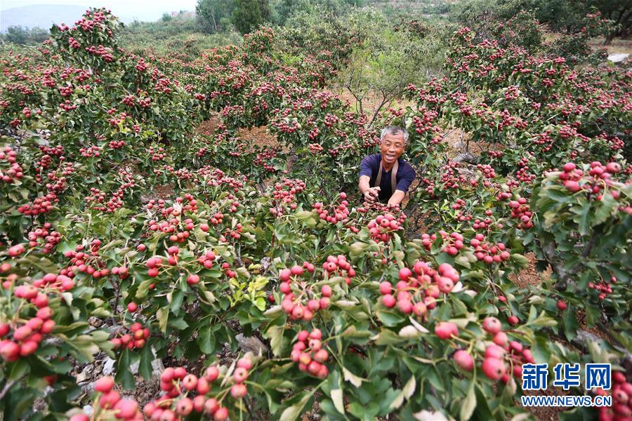 10月8日,山东枣庄山亭区山城街道胡沃村的农民在田间收获山楂。