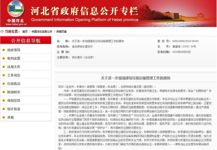 近日,河北省住建厅印发关于进一步加强建筑垃圾运输管理工作的通知提出,各市要进一步落实建筑垃圾运输经营许可制度,未经许可企业不得开展建筑垃圾运输业务。建筑垃圾车辆要全部进行密闭改装和安装卫星定位系统,非经批准和未安装密闭装置和定位系统的建筑垃圾车辆严禁上路运输,卫星定位系统要定期维护,保证正常工作。