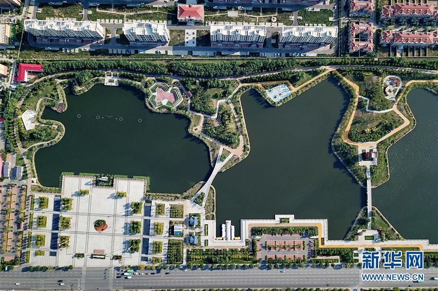 河北省黄骅市南海公园(10月6日无人机拍摄)。河北黄骅西湖公园和南海公园所在的位置曾经是一片城市荒地,废弃的窑厂、石料厂、煤场散落其中,带来了严重的环境问题。近年来,黄骅市对这片废弃地进行综合整治,建起两座生态公园,成为市民游客休闲游玩的好去处。 新华社记者 牟宇 摄