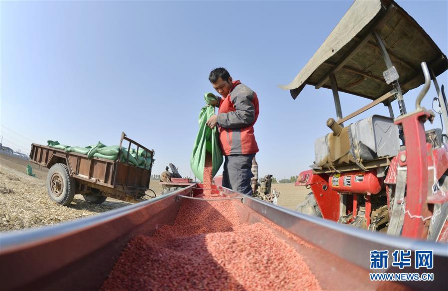 10月11日,河北邢台经济开发区林义农资专业合作社农民将小麦种子倒入播种机。 眼下正值金秋麦播时节,河北各地农民抢抓农时,做好冬小麦播种工作,田间一派忙碌景象。 新华社记者 朱旭东 摄