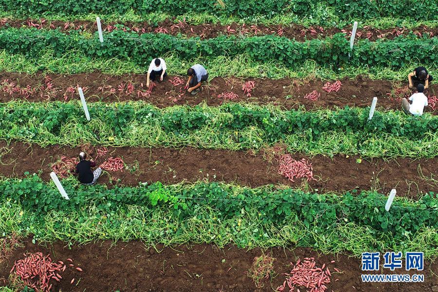 10月22日,农民在江苏省灌云县南岗乡岗西村收获红薯。 霜降将至,各地农民抢抓农时忙收获,一派繁忙的丰收景象。 新华社发(吴晨光 摄)
