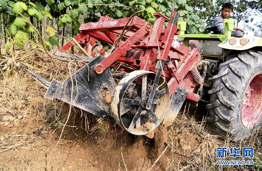 10月22日,安徽省亳州市谯城区谯东镇余集村的农民在收获中药材。 霜降将至,各地农民抢抓农时忙收获,一派繁忙的丰收景象。 新华社发(刘勤利 摄)