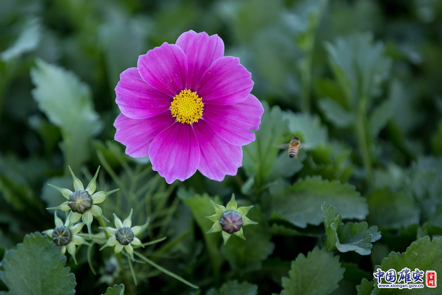 雄安市民服务中心内,蜜蜂在晚秋的花丛里翩翩起舞,流连忘返。中国雄安官网记者张斌 摄